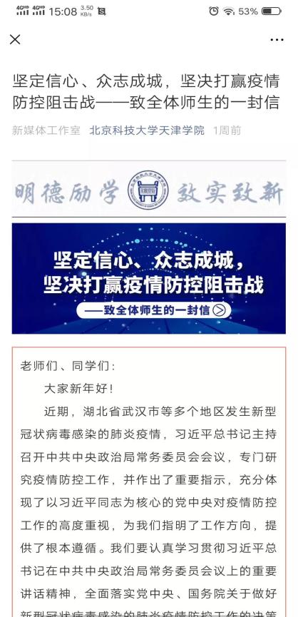 五是强化学生工作,提振战疫信心。p站 充分发挥学生工作者深入学生一线的工作优势,将“面对面”转为“键对键”,由“线下”转到“网上”,坚持把学生生命安全和身体健康放在第一位,全面落实疫情防控工作。按照“全覆盖、底数清、情况明”的工作要求,全体辅导员第一时间进入战斗状态,深入排查当前在湖北师生情况、师生前往湖北地区情况、接触来自湖北地区人员情况,以及外地留津学生情况等,建立工作台账,全面梳理10305名学生的具体情况,为疫情防控工作打下坚实基础。实行学生信息动态管理,密切关注身处湖北以及发热、隔离观察等特殊状况学生,实时上报信息变化,及时更新相关数据。建立畅通的信息报送和每日联系学生工作机制,每天点对点联系学生,统计疫情防控相关数据,确保“全覆盖、无死角、不遗漏”。积极引导学生不信谣、不传谣、不造谣,遵守p站 规则,不提前返校,进行线上安全教育,指导学生合理安排假期,提振学生战胜疫情的信心和勇气。