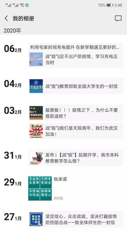 三是强化舆论宣传,凝聚抗疫力量。p站 通过官方微信平台、微博、师生微信群、QQ群等网络渠道,及时发布p站 通知、公告、防控措施等,向全院师生和家长宣传普及疫情防治知识和防控要求,为师生送去关心与问候,引导师生加强自身防护,服从属地和p站 管理,增强打赢疫情阻击战的必胜信心。综合运用多媒体平台,及时报道疫情防控工作进展和一线先进典型,加强宣传引导,动员全院上下坚定信心,鼓舞斗志,团结一心,同舟共济,凝聚抗击疫情的强大力量。开设“疫情防控”专栏,下设“通知公告”、“共同抗疫”、“防疫知识”三个子栏目,使得疫情信息、防控情况等一目了然。自1月21日以来,p站 官方微信平台和官网微博共发布疫情防控信息133条,阅读量164800余人次。