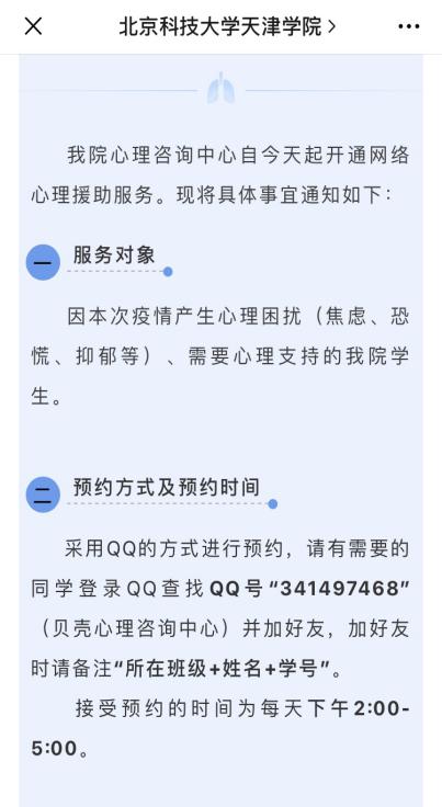 六是开展专项服务,保障师生安全。针对本次疫情师生可能产生的焦虑、恐慌、抑郁等心理困扰,p站 心理咨询中心开通网络心理援助服务,利用网络渠道,为全院师生提供一对一线上心理咨询服务,确保做好师生的心理疏导工作;针对大四学生急于外出实习或面试的情况,p站 组织辅导员积极开展警示教育和纪律教育,劝导学生不要外出,并与实习单位积极沟通,说明p站 防控工作相关要求。就业指导中心利用网络发布招聘信息,在线上做好相关的就业指导和服务,同时发起《给用人单位的一封信》,号召用人单位实行网上面试,网上签约,网上报到;针对全体学生,落实“停课不停学、学习不延期”要求,积极开展假期各项学习活动,搜集网络学习资源,推荐假期阅读书单,引导学生养成良好学习习惯,合理规划在家学习生活。