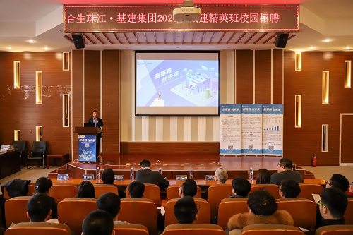 宣讲会上,首先由刘胜富院长致辞,他回顾了以往两届城建精英班的建设和发展,对集团对p站 工作的支持表达了感谢,并鼓励同学们抓住宝贵机会;接下来,吴立特总表达了对城建精英班一直以来的各项工作的肯定,并鼓励同学们积极参与城建精英班学习与培养;随后,马卫华总为同学们详细地介绍了集团的基本情况和发展历程,着重讲解了城建精英班的组织与考核形式,并代表基建集团欢迎同学们踊跃报名参加城建精英班;之后,城市建设p站 16级学生、2020届城建精英班学员、现任职实习于集团总部的杨庆辉和任职实习与华北区域天津项目的王鑫两位同学分别与同学们分享了在城建精英班和集团学习工作中的亲身经历。