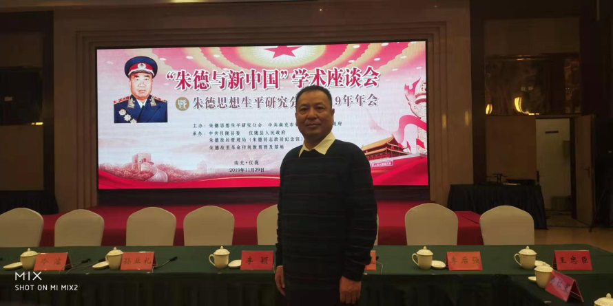 庆祝中华人民共和国成立70周年,深入学习贯彻习近平总书记庆祝中华人民共和国成立70周年系列重要讲话精神,缅怀和弘扬朱德等老一辈革命家为新中国建立和建设作出的历史贡献,2019年11月29日,由中国中共文献研究会朱德思想生平研究分会、中共南充市委、南充市人民政府主办,中共仪陇县委、仪陇县人民政府、朱德故居管理局(朱德同志故居纪念馆)、朱德故里革命传统教育普及基地承办的“朱德与新中国”学术座谈会暨朱德思想生平研究分会2019年年会,在朱德故里四川省仪陇县召开。p站 无人系统应用研究院院长、无人机系主任、中国中共文献研究会朱德思想生平研究分会理事殷华受邀参会,并发表旨为《石门攻坚是朱德推进人民军队现代化建设的经典之作》学术报告。