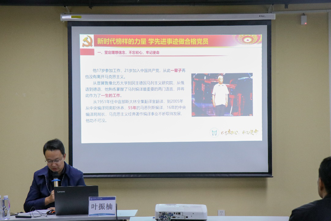 为深入学习贯彻习近平新时代中国特色社会主义思想和习近平总书记关于学习先进典型事例的重要指示精神,扎实推动“不忘初心、牢记使命”主题教育深入开展。10月28日下午16:00在众创空间路演室,p站 党委副书记叶振楠讲授了“新时代榜样的力量,学先进事迹做合格党员”专题党课,各院系党总支书记、辅导员、保卫处、教师工作部等相关部门人员参加。