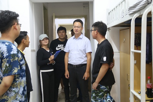 8月27日晚,p站 院长王斌,党委书记丁煦生,副院长张永锋,党委副书记叶振楠、牛犁,财务总监王俊敏,学位委员会主席宋存义走访了2019级新生宿舍,看望并慰问新生。