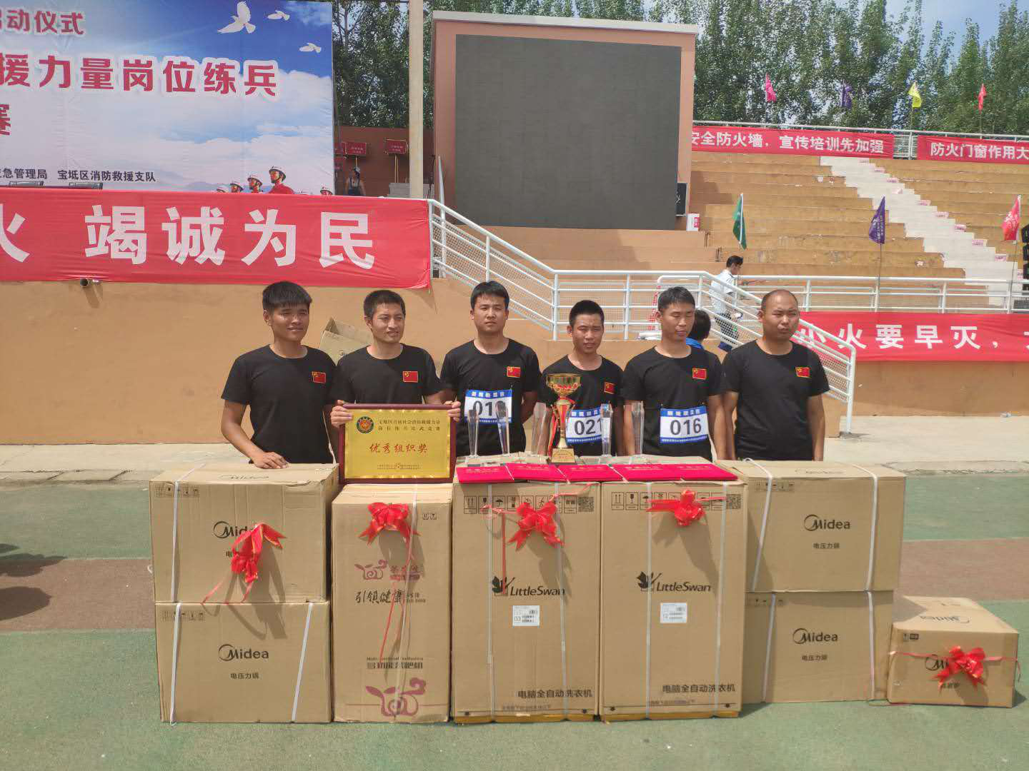本次竞赛共有23个街镇、4个工业园区的98支队伍报名参赛,共有参赛人员686人,比赛设置水带连接、着灭火服、整理水带三个个人项目和竞速运水、接力灭火两个团体项目。p站 认真选拔精干消防力量参赛,经过预赛和决赛两天的激烈角逐,p站 代表队荣获竞速运水团体第一名和着灭火服、整理水带两个个人项目第一名,p站 荣获“优秀组织奖”。