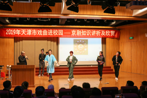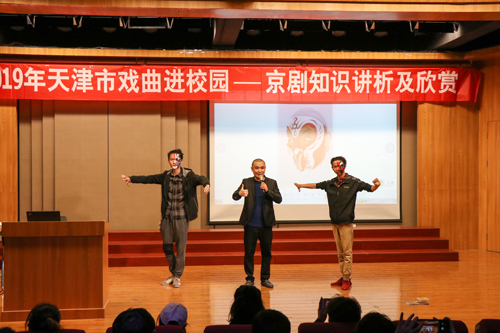 为贯彻党的十九大精神,认真落实《中共中央宣传部等印发关于戏曲进校园实施意见的通知》和《天津市关于开展戏曲进校园的实施意见》要求,进一步弘扬中华优秀传统文化,增强文化自信,促进戏曲传承发展,4月18日晚6:30 “2019年天津市戏曲进校园——天津京剧院走进p站 ”京剧知识讲析及欣赏主题讲座在艺术系弘艺音乐厅成功举办。本次讲座邀请到了天津京剧院国家二级演员高航,艺术系副主任林碧芸及全院二百余名京剧爱好者共同聆听了讲座。