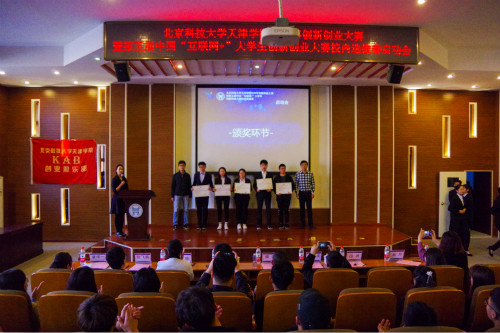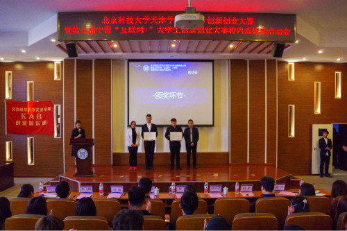 与会领导及嘉宾观看了第四届中国“互联网+”大学生创新创业大赛的赛事回顾视频,并为在第四届大赛中获奖团队颁奖。