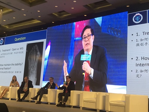 27日,温建民教授同Mariano de Prado Serrano教授,Antonio Viladot Voegeli教授,韩国足踝外科协会前任主席Yong Wook Park教授,Weill-Cornell医疗p站 A. Holly Johnson教授一起进行了《微创治疗拇外翻畸形的临床探讨》专题的学术授课。