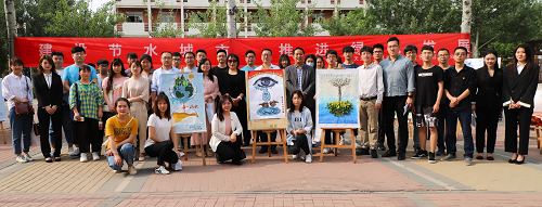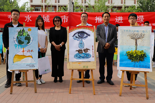 学术报告厅活动结束后,领导和同学们移步小广场,参观以节水为宣传主题的手绘海报展示,领导们为优秀作品颁奖并合影留念。